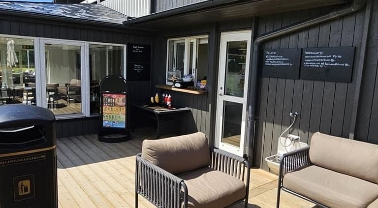 Även du som inte spelar är väldigt välkommen hit där du har perfekt solläge och dessutom bjuds bjuds du på underhållning i form av inspelen mot 15:e green och påföljande puttar!